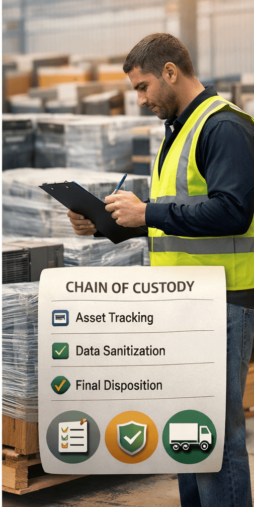 Every asset must be tracked from pickup through final disposition, creating a fully auditable trail.